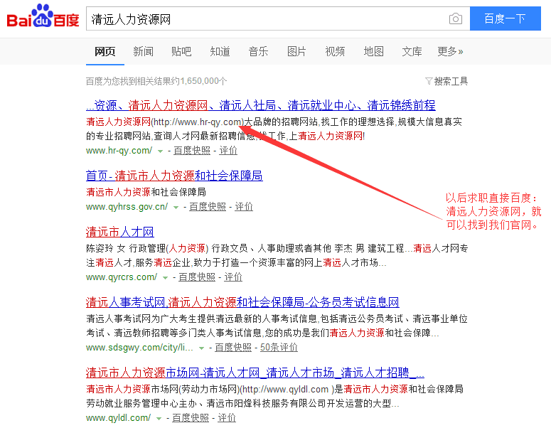恭喜“清遠(yuǎn)人力資源網(wǎng)”m.ct-systems.com榮登百度搜索清遠(yuǎn)地 區(qū)首位。清遠(yuǎn)人力資源網(wǎng)是由清遠(yuǎn)市人力資源市場(chǎng)指導(dǎo)、清遠(yuǎn)市錦繡 前程人力資源有限公司運(yùn)營(yíng)的官方求職招聘平臺(tái)。從3月份正式推 廣到現(xiàn)在,本網(wǎng)站已經(jīng)吸引了眾多企業(yè)與求職者注冊(cè)。